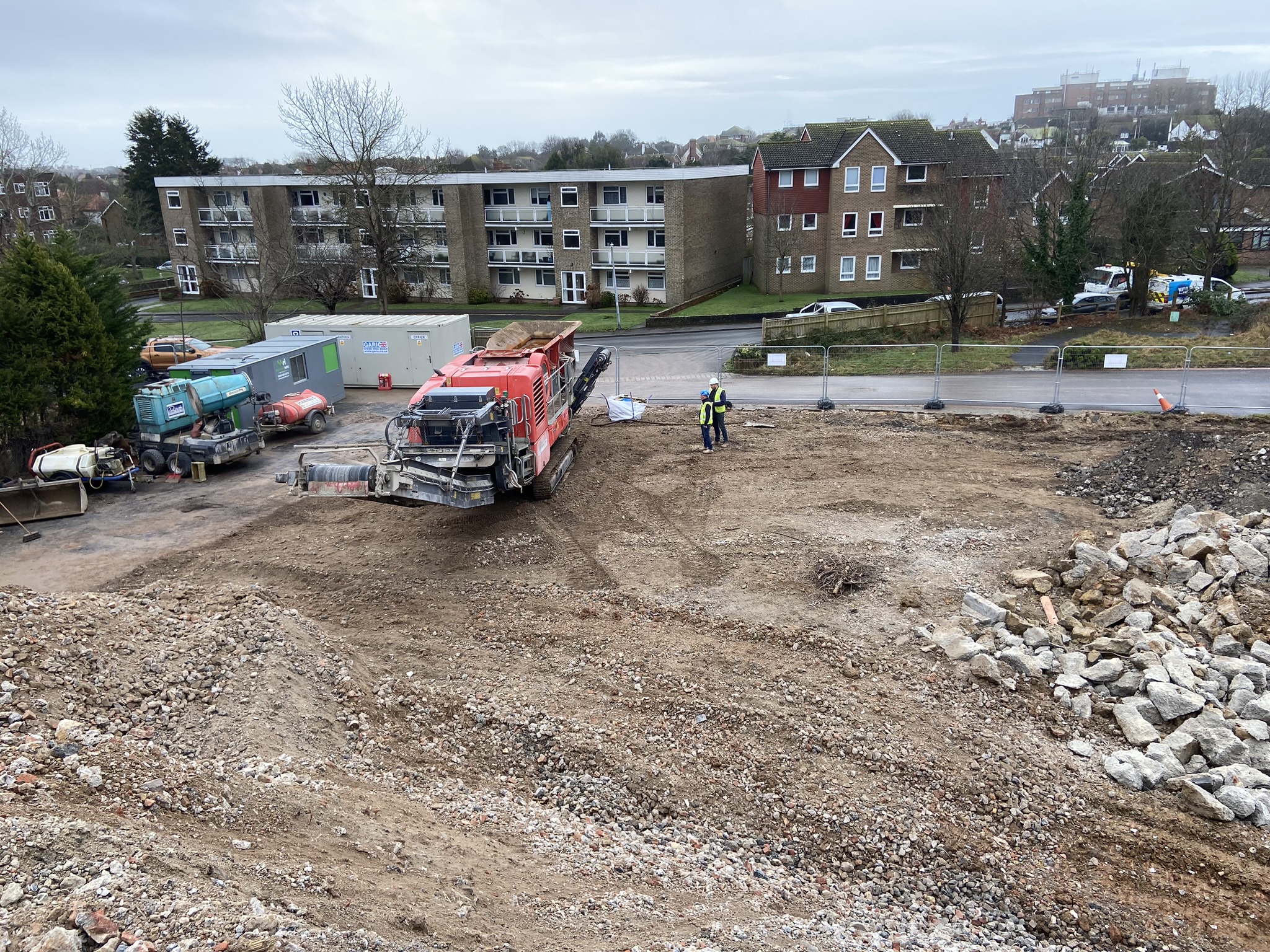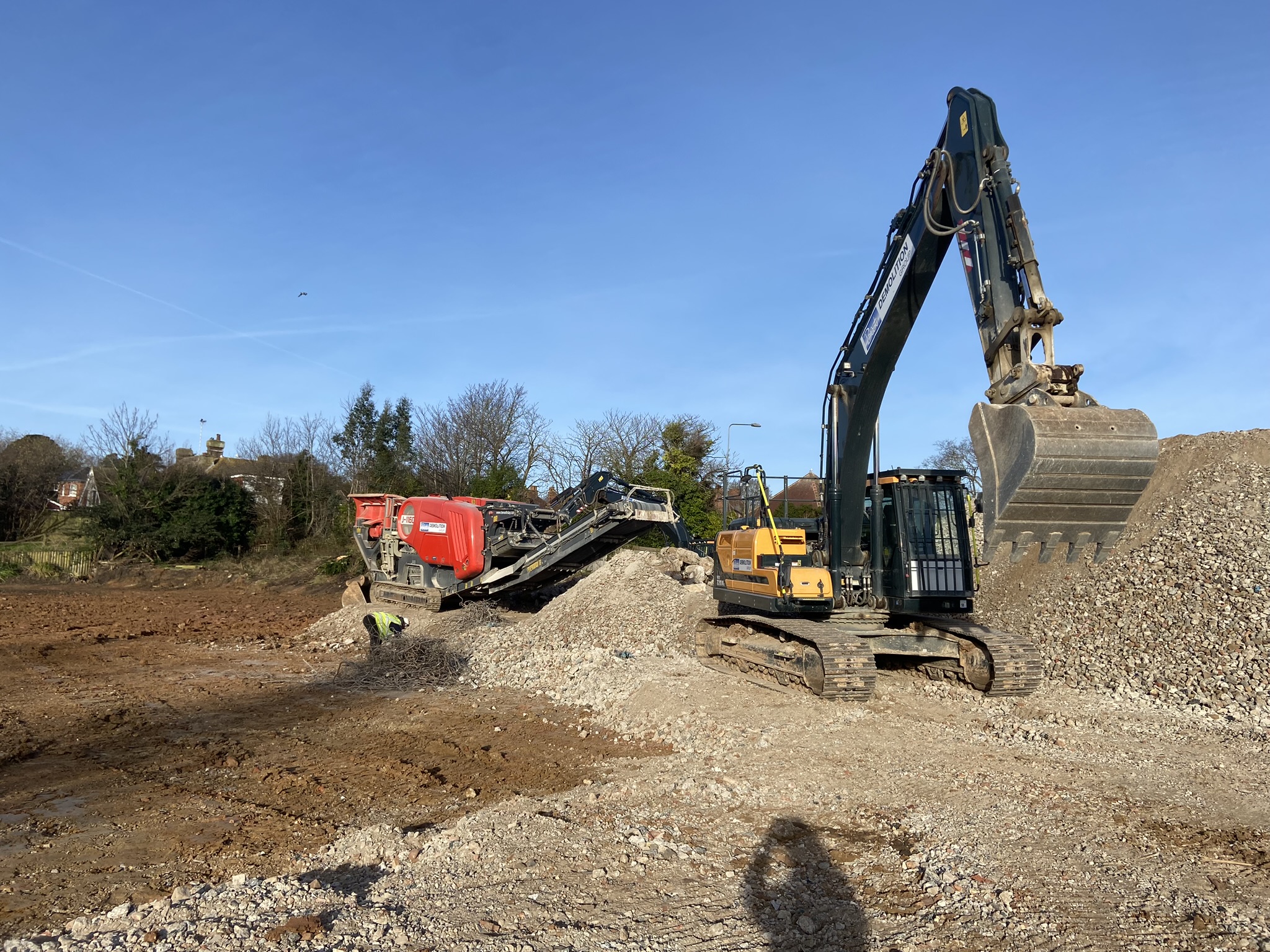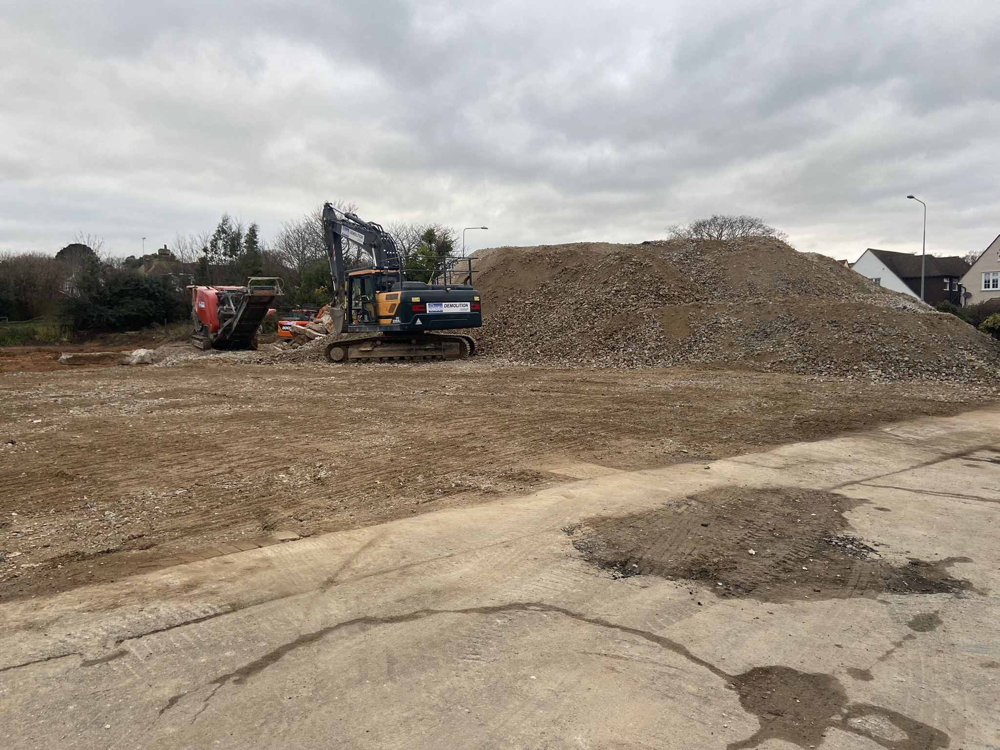 All materials generated from the demolition were sorted and processed on-site. Concrete, brick, and foundation materials were crushed to a 6F2 grading, producing approximately 3,500 cubic meters of recycled aggregate. By crushing these materials directly on-site, we reduced the need for external transport, minimising the project’s environmental impact and allowing for potential reuse of these materials in the upcoming construction. This sustainable approach aligned with our commitment to eco-friendly practices and responsible waste management.